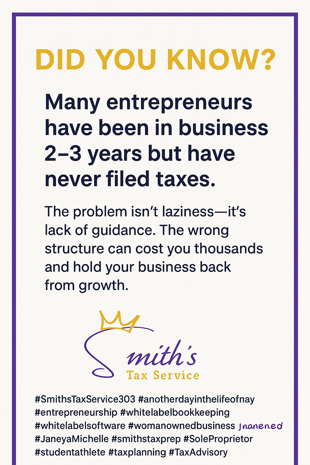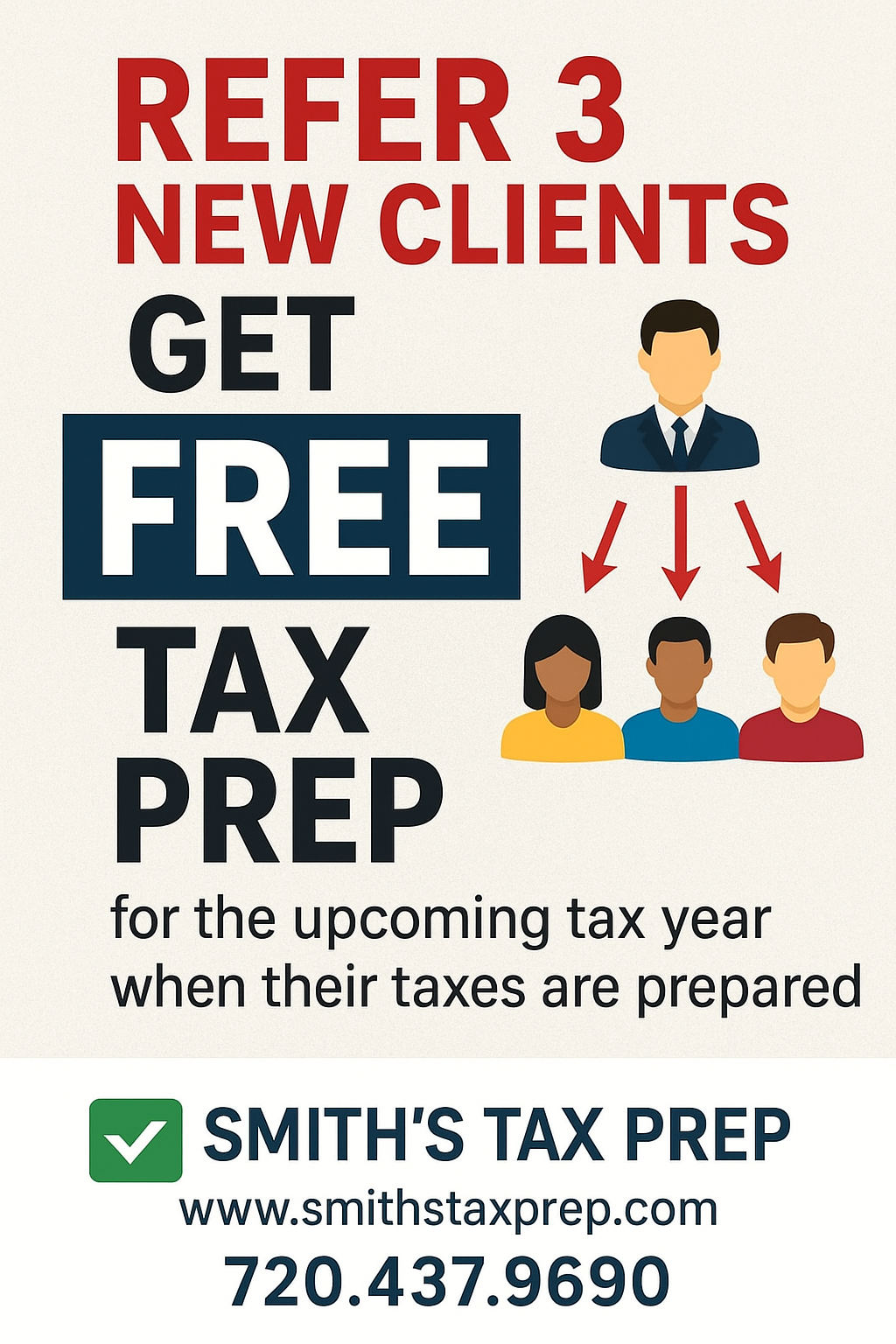Facebook @SmithsTaxService30 Instagram @smiths_tax_service_303 Twitter at #smithstax303